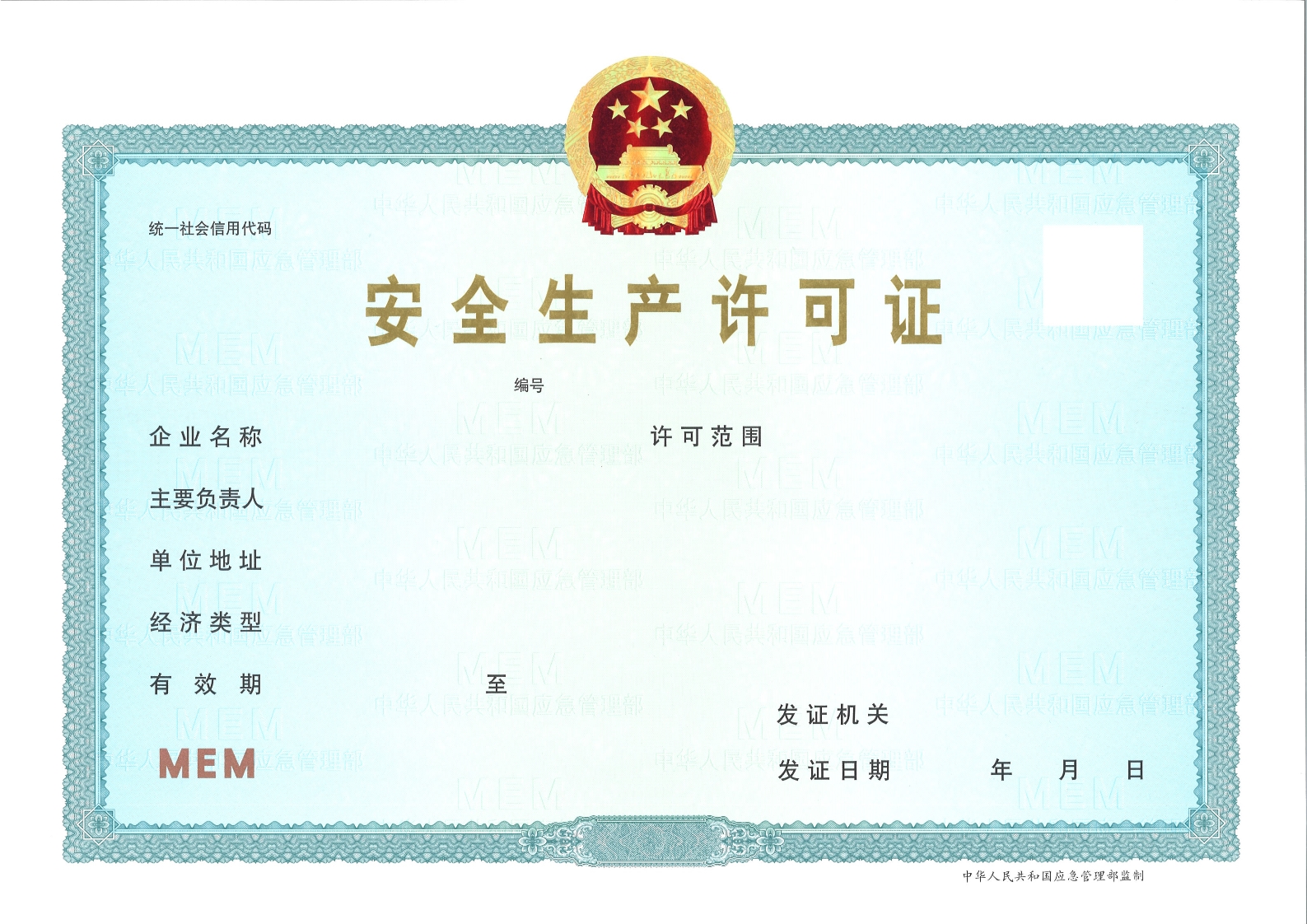 | 安全生产许可证申请书 | 原件 | 纸质/电子化 | 申请人自备 | A4纸打印或钢笔填写,法人代表签字并加盖企业公章,申请书填报日期为提出申请当天日期。 | 3 | [示例表格] | [空白表格] | 必要 |